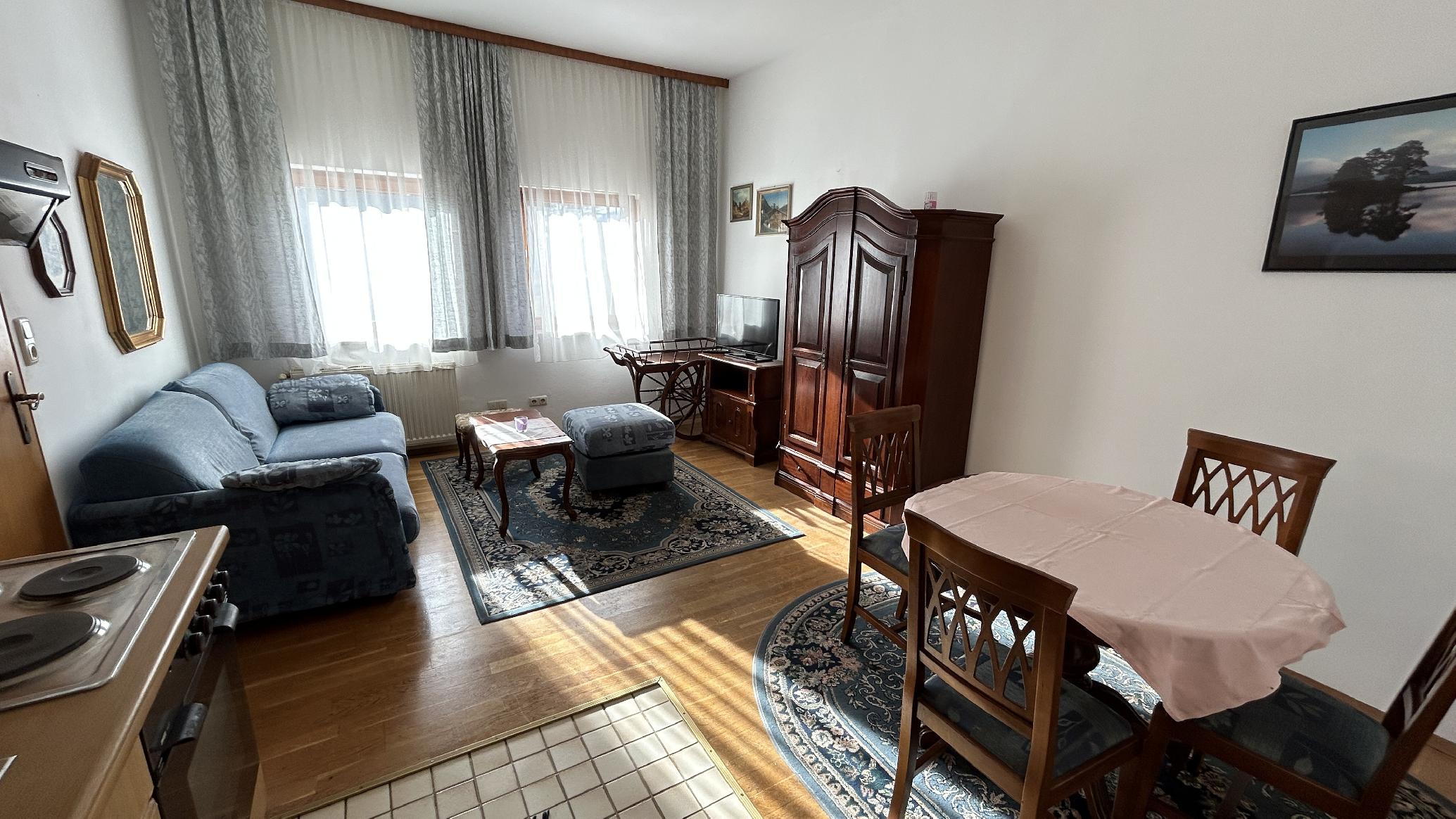 Diese gut eingeteilte 2-Zimmerwohnung, befindet sich im 1. Obergeschoss eines gepflegten Wohnhauses (bisher als Appartementhotel geführt), in zentraler Lage von Bad Hofgastein. Zum Ortszentrum von Bad Hofgastein, mit diversen Einkaufsmöglichkeiten, Ärzten, Apotheke, Bank, Cafés, Restaurants usw., sowie zur Alpentherme und zum Kurpark, sind es ca. 5 bis 15 Gehminuten. Die Schloßalmbahn ist in wenigen Minuten mit dem Auto oder Bus erreichbar. Eine Bushaltestelle befindet sich nicht weit vom Haus entfernt. Die Wohnung besteht aus Wohnzimmer, mit Essbereich und Küchenzeile (inkl. Küchengeräten) / ...